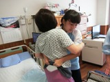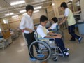 1年福祉科の2016年、初めての校内演習はポータブルトイレでの排泄介助です。