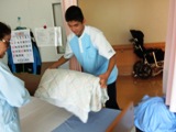 10月2日(月)から17日(火)にかけて、10日間の介護実習を行っています(土日祝・帰校日を除く)。利用者の方と会話をして、食事の介助を行ったり、ニーズを聞き取ったりしています。実習施設には、芦高福祉科の卒業生がたくさんいますので、困ったときには先輩を頼りながら日々頑張っています。実習指導者の方からは、日頃より温かい助言をいただき、感謝しています。今後ともご指導のほどよろしくお願いします。