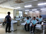 初日は「基礎講習」で、AEDの使い方や喉につまった異物をとる方法、毛布での搬送方法などを学びました。