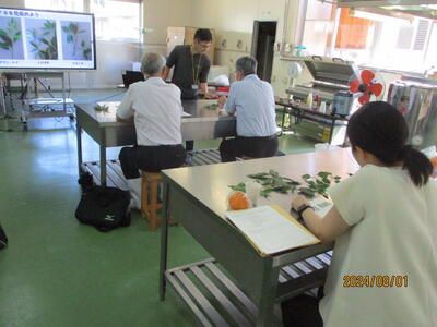 発酵と焼き上げの間に、3年生の『光合成細菌によるカンキツの生育』に関する研究発表と職員による『クスノキと野菜の病気』に関する授業を行いました。