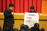 そして、人権委員会から各学年の人権教育の取組みについての発表や「いじめを許さない宣言」を行いました。