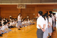それから、始業式では丁校長先生の訓話や生徒会より月目標の発表がありました。
