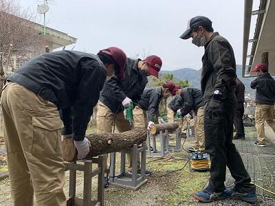 2年生の林業科は、スギ材のベンチを10脚製作しています。製材や木取りなどは、芦北町にしていただいていますが、墨付けや部材の組み立ては、生徒達で行います。ミリ単位で線を引き、丁寧にボルトを打ち込んでいきます。このベンチはどうなるのか完成したらお知らせしますね!