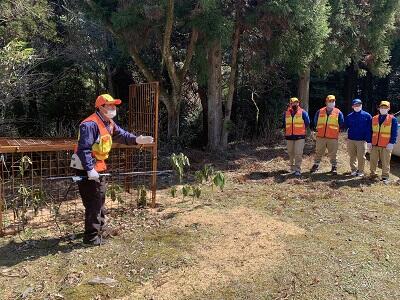 本当は、2月に実施予定だった鳥獣対策と狩猟技術向上のための研修が行われ、狩猟免許を取得し、先日卒業したばかりの3年生が演習林に集まりました。今日は、くくり罠(中学生の皆さん調べてみよう♪)の設置方法を学び、実際に演習林内に設置しました。最後は、捕まえたシカやイノシシをどのように「命をいただくか」まで学びました。これで若いハンターが誕生したのです。