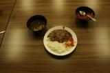 1日間伐作業を終えた後、宿舎で夕食を食べました。