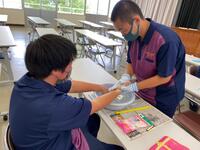 林業科2年生は、二学期になってから木工の実習が続きました。創立百周年の記念式典用の記念品を作るのです。ヒノキ板を使ったバインダーですが、サンドペーパーで光沢が出るまで磨くのです。ニスを塗って完成しました。喜んでいただけると嬉しいです。