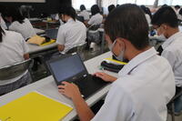 教科書やChromebookを活用し、互いに意見を出し合っています