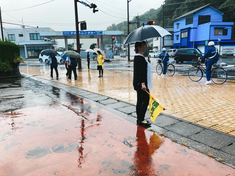 本日、芦北高校育友会も地域の安全を守るため、芦高生のみならず小中学生の登校の見守りを行いました。