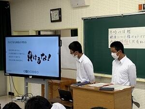 校長訓話では、部活動や農業クラブ活動で全国大会、九州大会、県大会において夏休み期間に表彰を受けた生徒たちへの敬意が述べられました。