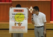 生徒会から月目標が発表されました。9月の目標は、3年福祉科が考えた「生活リズムを整えよう」です。夏休みで生活リズムがくずれているため、早寝、早起き、朝ごはんをもう一度意識しましょう。