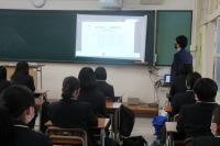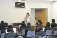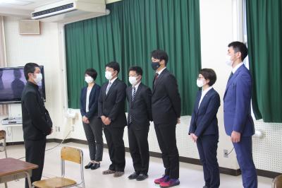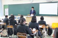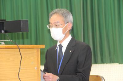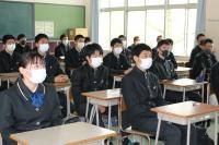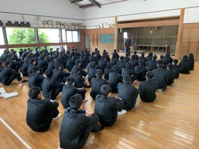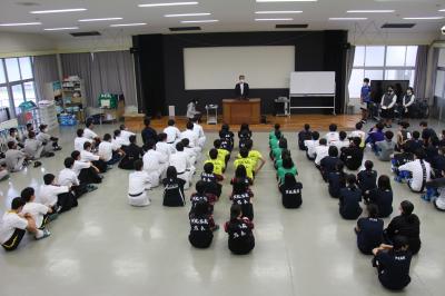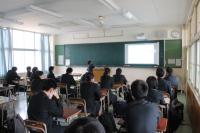 本日は、本校林業科卒業の前島先生が、生徒達に芦北高校同窓会「三太郎会」について話されました。