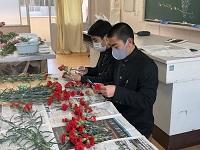 農業クラブ役員は卒業生のために「コサージュ」を作りました卒業生は明日コサージュを胸に付けて参加します。先輩たちが輝くように一つ一つ丁寧に作りました