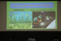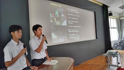 林業科では、演習林などで学んでいる実習実践や森林活動の他に、森林のシカによる被害を防ぐための狩猟や、アマモによる海の再生活動の取り組み等が紹介されました。