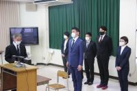 カメラ取材を受けられながらノートPCに向かって話される先には、それぞれのクラスに動画配信されています。内容は、本校に創設される「クリエイティ部」のお話しです!