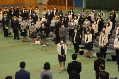 残念ながら、式歌や校歌は新型コロナ感染拡大防止のため、CDを聴くにとどまりました。