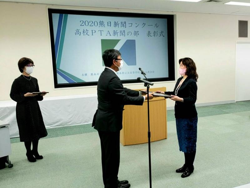 芦北高校の林業科がこれまで長年研究してきたアマモ(水草)についての取り組みが評価され、くまもと環境賞を受賞し、熊本県庁において授賞式が行われました。校長先生と研究班にも入っている生徒会長が代表で参加しました。今回は、自然共生賞と永年活動表彰のW受賞になります。素晴らしい取り組みですね!!!。