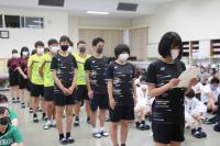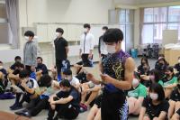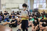 インターハイ壮行会では、この夏のインターハイへの出場を決めた空手部や新体操部に向けて、学校長から激励の言葉が贈られました。続いて、各選手からインターハイへ向けての意気込みを述べてもらいました。
