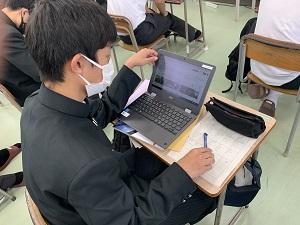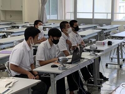 専門高校を対象とした海外派遣研修が行われ、林業科1年生の上村君が参加しています。ただこの新型コロナウイルスの影響のため、リモートによる研修です。今日は、スリランカの高校生との交流でした。お互い英語で自己紹介や質問をしていました。農業や環境問題はもちろん、世界の文化についてかなり視野が広がったようです。
