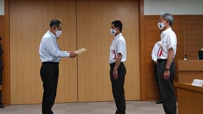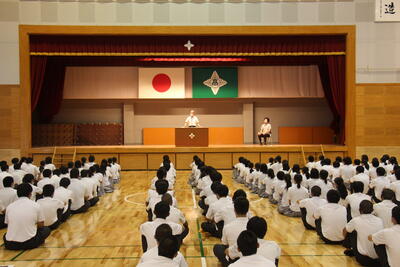 表彰式では、九州大会や全国大会へ出場を決めた部活動(相撲部、空手部、新体操部)や、農業クラブや林業科での取り組みで表彰をうけたプロジェクトグループが登壇しました。