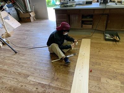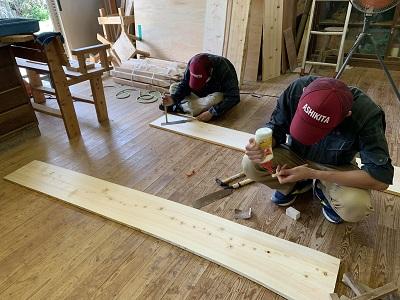 農業関係高校では、放課後に「時間外総合実習」という当番実習が行われます。この日の2年生の実習は、ヒノキの板の節を打棒で埋めるという実習でした。この大きな板は、今年創立100周年を迎える芦北高校の記念品になるのだそうです。何になるのか楽しみですね♪。