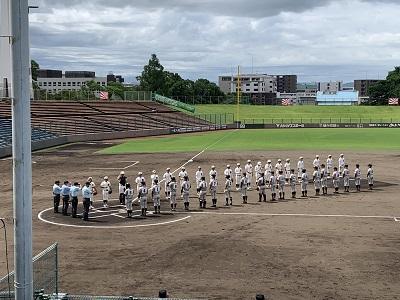 昨年の7月豪雨で硬式野球部はグラウンドが使えなくなり、道具も全て失ってしまいました。しかし、たくさんの方々の支援でまた野球ができるようになりました。そんな野球部の今年のスローガンは感謝の夏!!!。大会前から県内はもちろん全国の新聞テレビの取材を受けていました。そして、夏の大会が始まりました。なんと、開幕試合!!!開会式は新型コロナの影響で、開幕試合の2校のみでしたが、2年ぶりということもあり感慨深いものでした。試合は、惜敗でしたが、最後まで感謝の気持ちを伝えることができたようです。これからも芦高野球部の感謝の夏は続きます!!!。