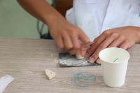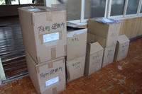 〔船橋市旭中学校支援学級(千葉県)のみなさんが作製して送付いただいた雑巾660枚〕