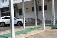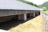 道を1本隔てた先に芦北高校の校舎があり、1階の中程までが水につかっています。