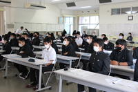 本来は、全校生徒対象なのですが、コロナウイルス感染症リスクレベル5に引き上げられたため、3年生のみとなりました。