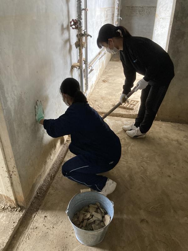 農業科は、ハウスや農場周辺の泥の除去や更衣室掃除などを行ないました。