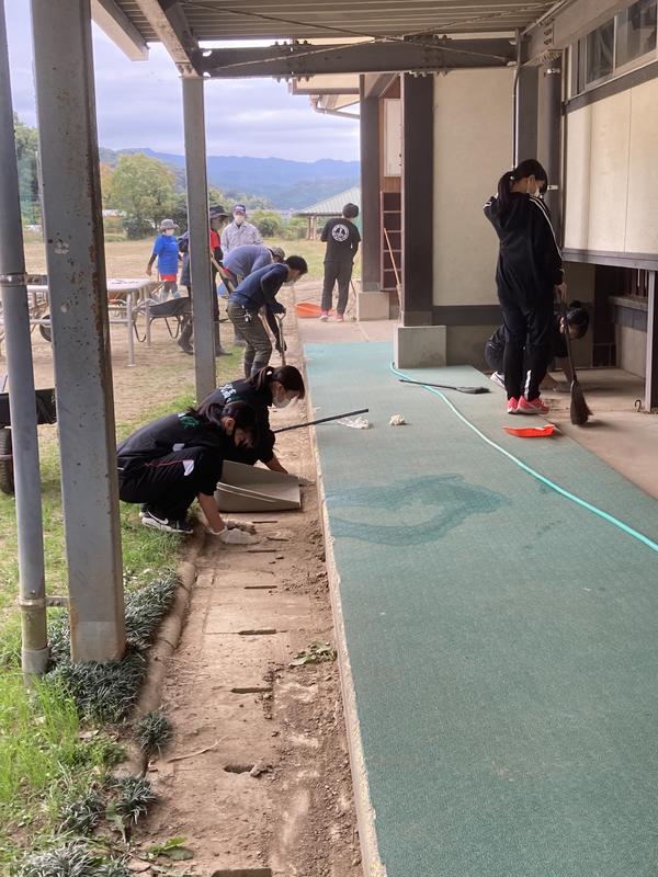 林業科は、体育館周辺の泥の除去よシートの洗浄などを行ないました。