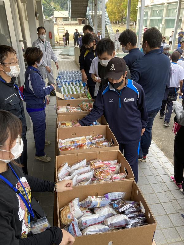 全国各地から、飲料水や食糧、タオルなど多くの支援を芦北高校にいただきました。