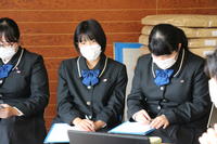 消費者トラブルの防止のために知っておきたい決まり事や、SNS上等での注意点など詳しくお話しいただきました。生徒のみなさんも、メモを取りながら、真剣に講話を聞いていました。