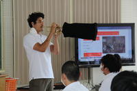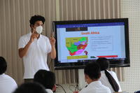 南アフリカ共和国のご出身で、大学時代の専攻は音楽。生徒達の前で、トランペットも音量を抑えて披露して下さいました。演奏を聴いて、生徒達からは拍手喝采が送られました。先生のお名前のKeegan SteenkampとYoutubeで検索されると、演奏されているキーガン先生の姿を拝見することができます。