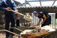 昨日の場所に加え、今日はまだ泥や土砂の残る場所で懸命に復旧に精を出す姿が見受けられました。