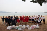 海岸沿いには、いろんな漂着ゴミが打ち寄せられるので、第1回の考査後に海岸清掃を行なっていました。今年は残念ながらコロナの影響で中止となり、写真は昨年度の海岸清掃時の様子です。