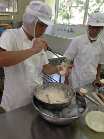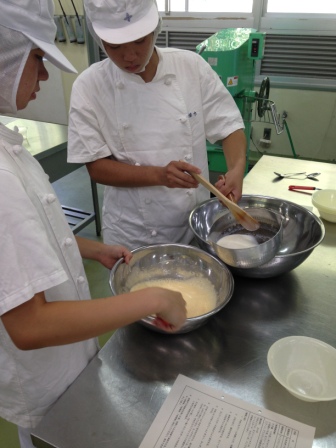 農業科2年生「食品製造」では小麦粉を使った菓子製造の学習を行なっています。