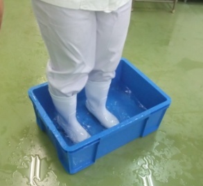 洗浄、ピッタリフィットの手袋をはめて、長靴を消毒槽で洗浄した完璧な状態で製造します。