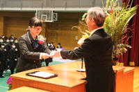 生徒を代表して生徒会長が感謝の言葉の後、生徒会より花束贈呈を行いました。