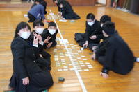 各クラスでチームを作り、トーナメント方式で百人一首の競技を行いました。みんなで協力して、楽しみながら授業に取り組みました。百人一首競技を通じて、古典に触れる楽しさを学ぶことができました。