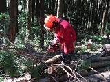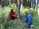 (実習は、ヒノキの伐倒、造材、運搬を行いました)