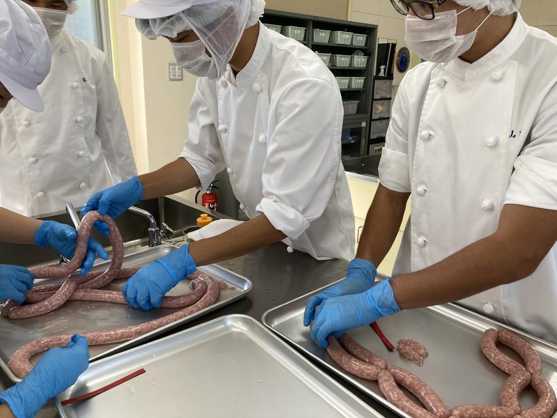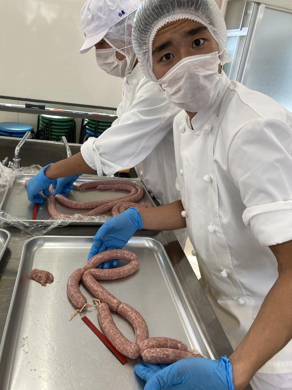 農業科3年生「食品製造」の授業では肉加工について学習しています。今回の実習では『ウインナーソーセージ』を作りました