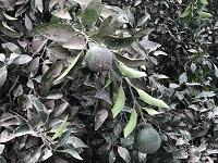 昨年7月豪雨の影響を受けた果樹園ですが、なんとか今年も不知火(デコポン)は実を付け、大きくなってきていますこの時期は果実の肥大期ですので、不知火の枝つり・玉つりが実習の中心になります