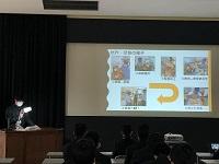 地域の魅力を発信したい、地域の課題を解決したいという思いから起業したことを生徒に伝えてくれました。また、開発した光合成細菌の話もしていただきました。これを使うことで、環境にもやさしく、収量アップや品質改善に効果があったことを教えてくれました