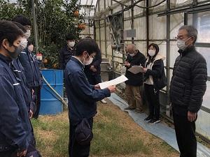 今日は不知火の「鋏入れ式」がありましたこれは不知火の収穫開始する合図を意味する儀式で、果樹専攻生にとっては最後の大きな行事です