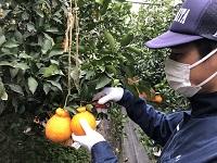 12月になると農場のカンキツ類は収穫の時期を迎えます。今日は農業科3年生果樹専攻生でスイートスプリングを収穫しました