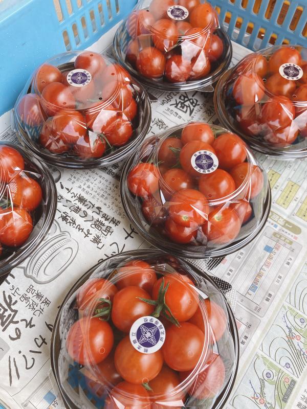 野菜専攻生はキュウリとミニトマトの収穫と調整及び個装、そして二輪車にのせて地域を巡回して販売します。