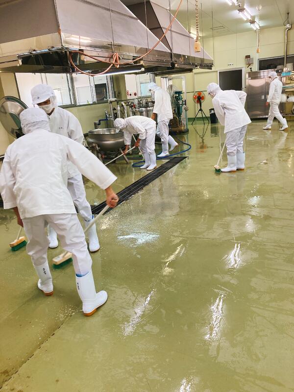 焼いている間に、全員で協力しながら器具や実習台、床の洗浄も行います