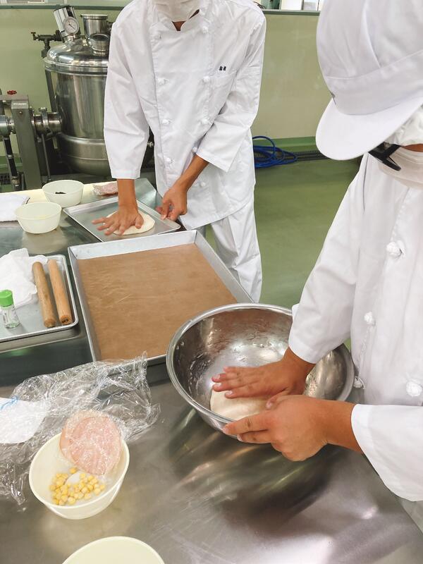 今回の実習では「あんパン」「ハムパン」「コーンマヨパン」を作りました
