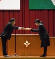 表彰式では、情報処理検定、部活動表彰(バドミントン部、空手道部、弓道部)、熊本の心の作文、介護コンテスト、校内漢字テスト等の優秀者が表彰されました。