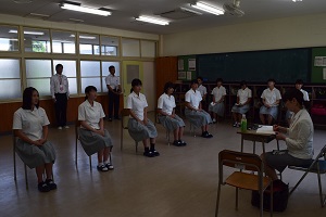 本日9月10日(月)5・6限目に、3年生対象の就職面接練習会が開催されました。面接官として「芦北ロータリークラブ」より21名の方々に来校いただき、実際の企業経営の視点などから、丁寧な面接指導をしていただきました。
